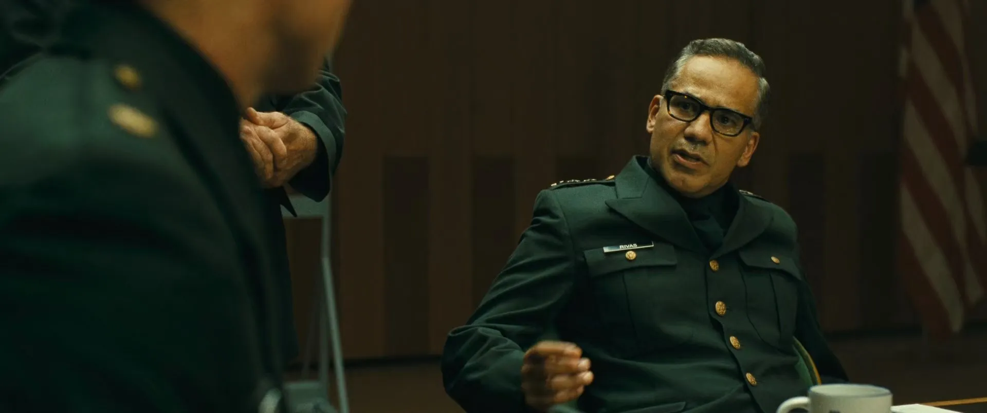 Cast: Brad Pitt as Roy McBride, Tommy Lee Jones as H. Clifford McBride, Ruth Negga as Helen Lantos, John Ortiz as Lieutenant General Rivas, Liv Tyler as Eve, Donald Sutherland as Thomas Pruitt, Greg Bryk as Chip Garnes, Loren Dean as Donald Stanford, Kimberly Elise as Lorraine Deavers, John Finn as Brigadier General Stroud, LisaGay Hamilton as Adjutant General Vogel, Donnie Keshawarz as Captain Lawrence Tanner, Bobby Nish as Franklin Yoshida, Sean Blakemore as Willie Levant, Freda Foh Shen as Captain Lu, Kayla Adams as Female Flight Attendant, Ravi Kapoor as Arjun Dhariwal, Elisa Perry as Woman in White Pants-Shirt, Daniel Sauli as Sal, Kimmy Shields as Sergeant Romano, Kunal Dudheker as Technician One, Alyson Reed as Janice Collins, Sasha Compère as Female Team Member, Justin Dray as Male Team Member, Alexandria Rousset as Woman on Screen, Natasha Lyonne as Tanya Pincus, Zoro Saro Manuel Daghlian as Spacecom Employee, Jacob Sandler as Young Roy, Elizabeth Willaman as Cepheus (voice), Robert J. Yowell as Lunar Base Technician, Nicholas Walker as Lunar Medic, Amanda Tudesco as Grace, Lisa Shows as Military Medic, Brynn Route as Shunga Hologram, Valeri Ross as Moon TV Guest #1, Rochelle Rose as BBC News Reporter, Eloy Perez as Lt. Nash, Melvin Payne Jr. as Russian Astronaut, Jean-Pierre Mouzon as American Astronaut, Jen Morillo as Hologram Dancer, Noelle Messier as Capt. Devries, Anne McDaniels as Shunga Hologram, Kento Matsunami as Hip Japanese Traveler, Mallory Low as Spacecom Employee, Sheila M. Lockhart as Drug Addict, Donna Lee as Hip Japanese Traveler, Halszka Kuza as Dancer, Matthew Jones as Paramedic, Bayani Ison as Asian Male Host, Danny Hamouie as Rory Flynn, Georgia James Gray as Evelyn McBride, Eleanor Goodall as Ship Med Tech, Luis Richard Gomez as Jim, Eliza Gerontakis as The Singing Face, Vivian Fleming-Alvarez as Mars Officer Daniels, Lorell Bird Dorfman as Earth Scientist, Lawrence Dex as Robert, Bayardo De Murguia as Hector Bustamante, Rodney Damon Collins as Mechanic